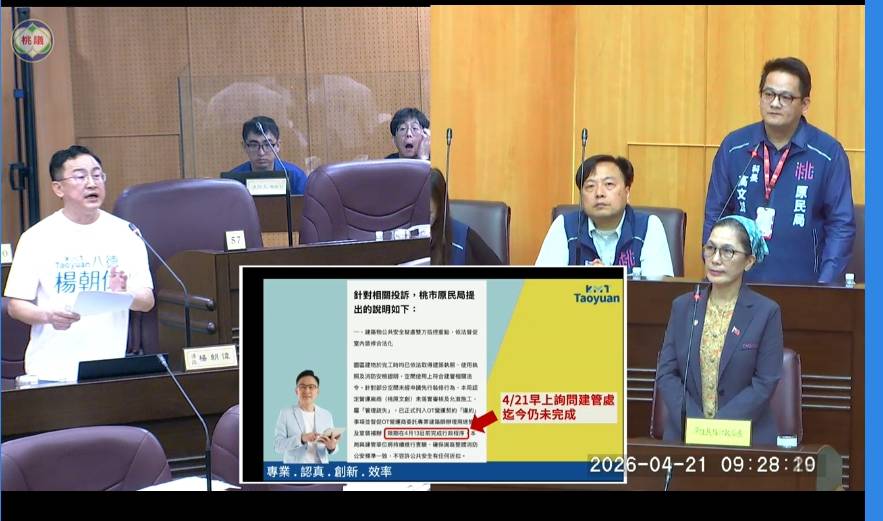 此外,針對裝修及用途變更程序,楊朝偉指出,市府曾於新聞稿中明確表示,將督促OT廠商於4月13日前完成相關行政程序,但截至4月21日,建管處仍未收到任何送件資料,甚至預計延至5月4日才會掛件,痛批市府「對外說一套、實際做一套」。