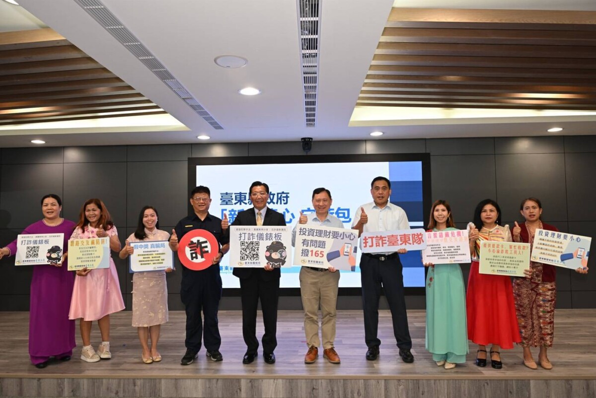 為有效預防詐騙犯罪危害,臺東縣警察局於今(21)日上午10時辦理「『新』連心 守荷包」防詐記者會,由副縣長王志輝率同警察局副局長邵明仁主持,邀請社團法人臺東縣外籍配偶協會志工團隊參與,強調突破語言隔閡,由志工以母語向新住民朋友宣導正確的防詐觀念,與警方合作共同守護多元族群。