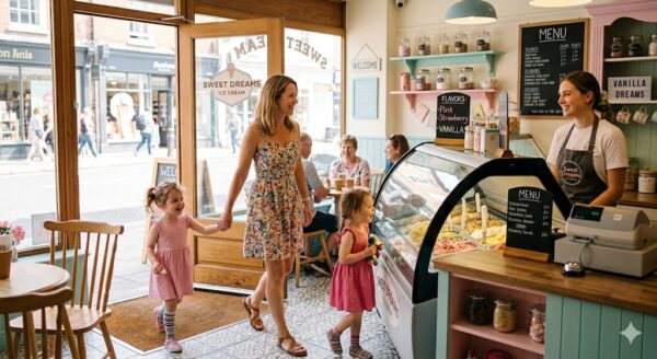 小女孩站在櫃台前,不吵、不鬧,只是很確定地指著草莓。