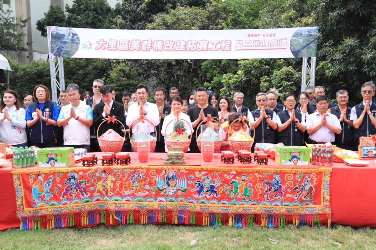 為強化大里與霧峰區交通動脈安全,落實「富市台中、行人安全」理念,台中市政府斥資總經費 3.97 億元推動「大里區美群橋改建拓寬工程」。今(22)日由市長盧秀燕親自主持開工典禮,預計 116 年底前完工。盧市長強調,此工程展現市府「開不了工的要開工,完不了工的要完工」的決心,並打趣自認對大里建設「情有獨鍾」。