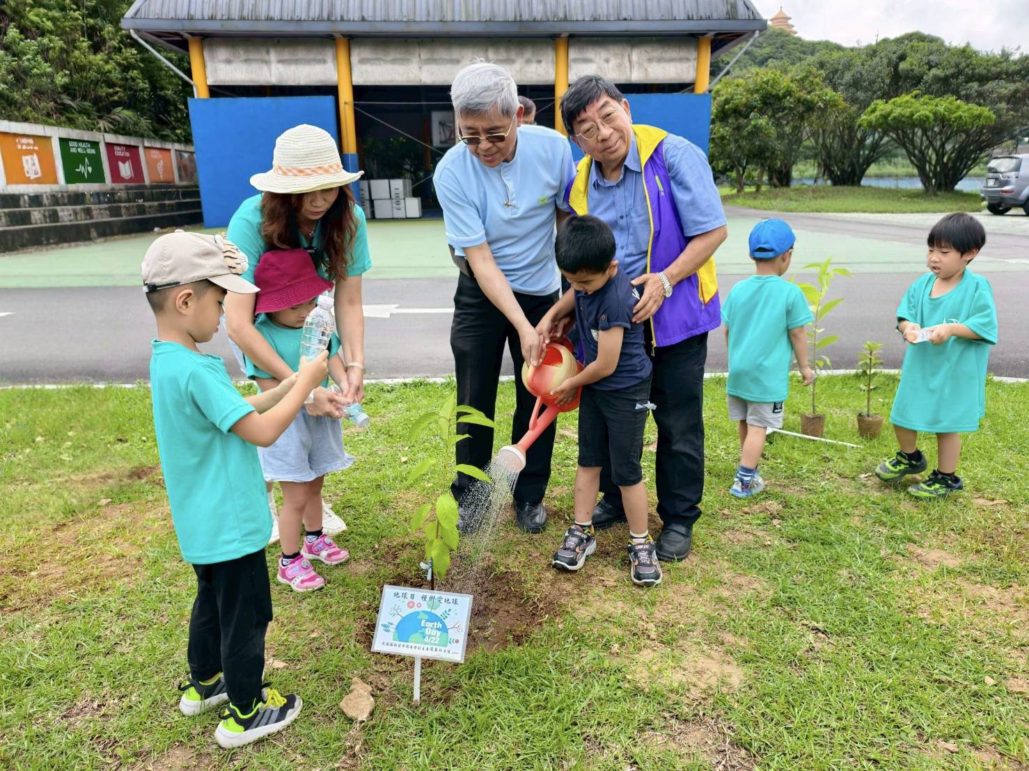 救國團新北市團委會副主委羅英弘表示,救國團除了公益、教育、服務、健康四大志業外,成立第五大志業永續志業,透過這次的活動,每一鏟土、每一瓢水都是對地球的關心,能夠讓更多學童從小關注環保議題,並且實際行動起來,共同為地球的永續環境來努力,今天種樹的目的在於喚起我們對環境保護的意識,從小做起,透過具體行動如減塑、節能、減碳、綠色生活等來解決氣候變遷、污染等環境危機,共同守護地球。