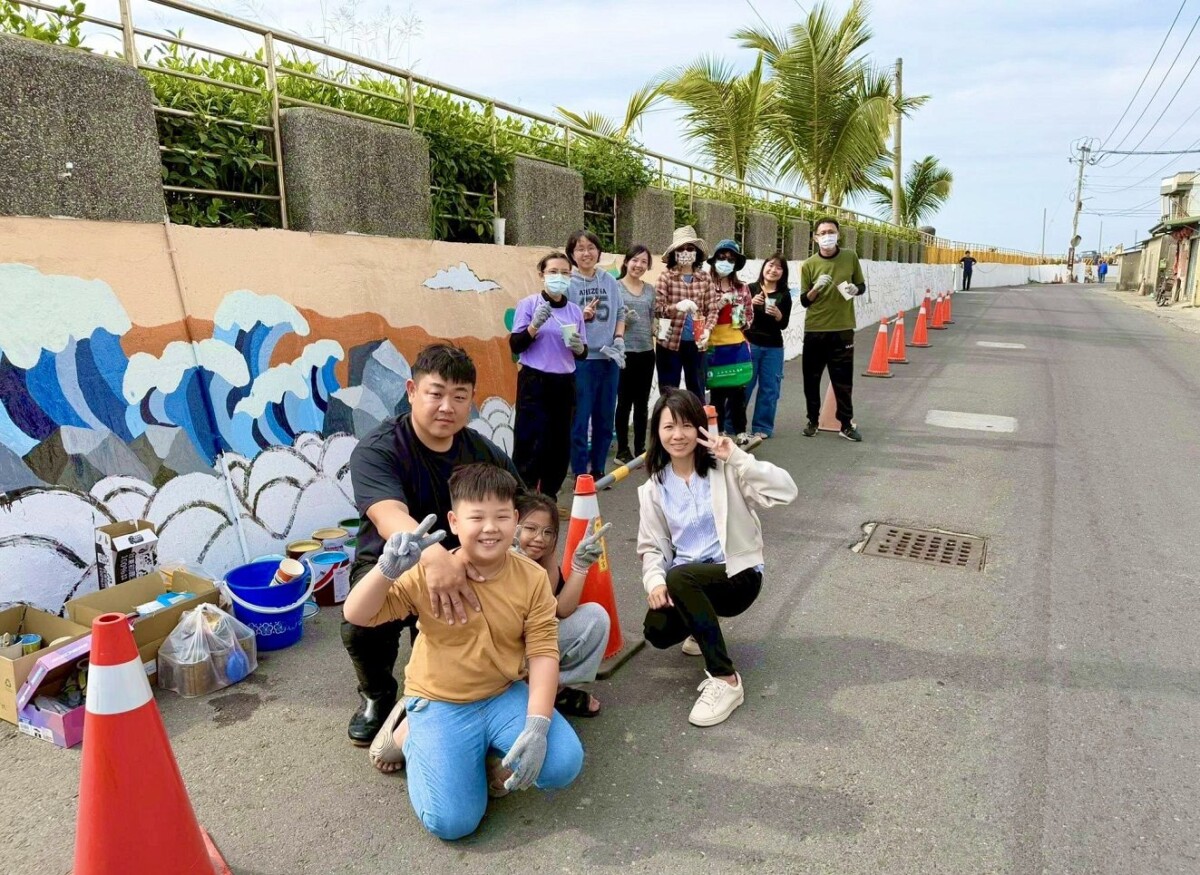這項名為「咱的蚵仔寮,咱的故事」的社區營造彩繪計畫,由蚵寮國小發起,在校長方珮玲與家長會長王紹銘帶領下,結合師生、家長、校友與在地文史團體力量,透過三週視覺藝術課程接力創作,將通安宮旁海岸線圍牆轉化為長達百米的藝術廊道。參與者從孩童到長者,跨越世代,以畫筆共同描繪家鄉記憶,展現社區凝聚力。