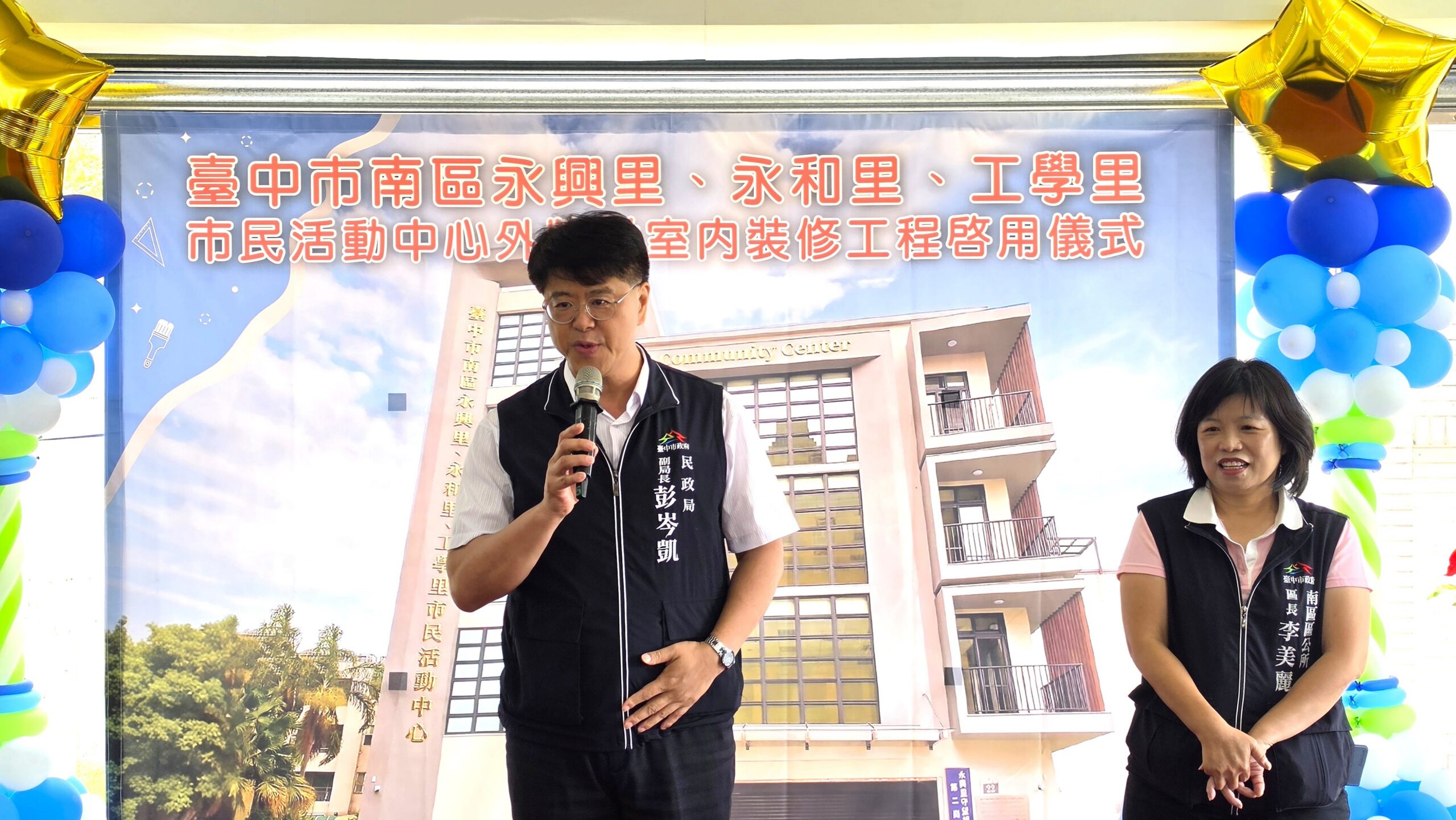 為提升活動中心使用便利性與公共服務品質,台中市政府民政局挹注南區區公所近85萬元,推動南區永興、永和及工學里市民活動中心外牆及室內裝修改善工程,增設鐵捲門與性別友善廁所,今(27)日舉行啟用儀式。民政局副局長彭岑凱代表市長盧秀燕出席表示,市府重視基層公共設施服務機能,透過貼近民眾需求的細部改善,提升活動中心場地管理彈性與使用品質,打造更安全、友善的鄰里共享空間。
