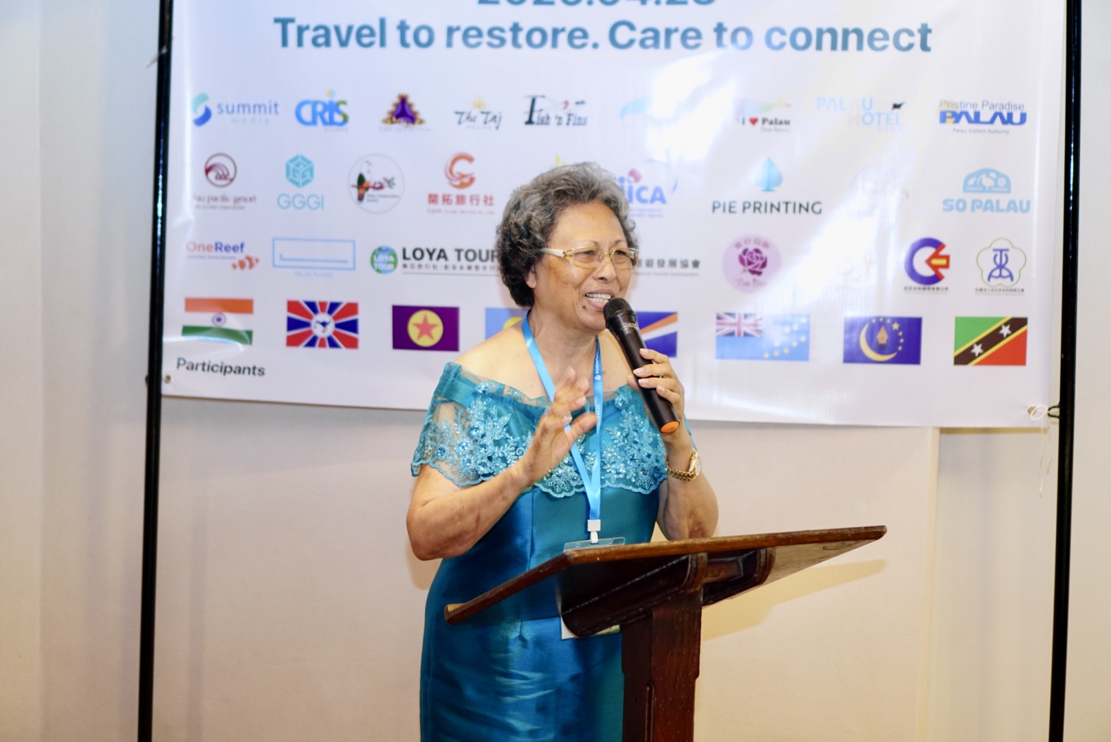 圖:帛琉女皇Bilung-Gloria-Salii於活動現場致詞,展現當地領袖對永續旅遊與海洋保護的支持。(帛琉薈萃集團提供)