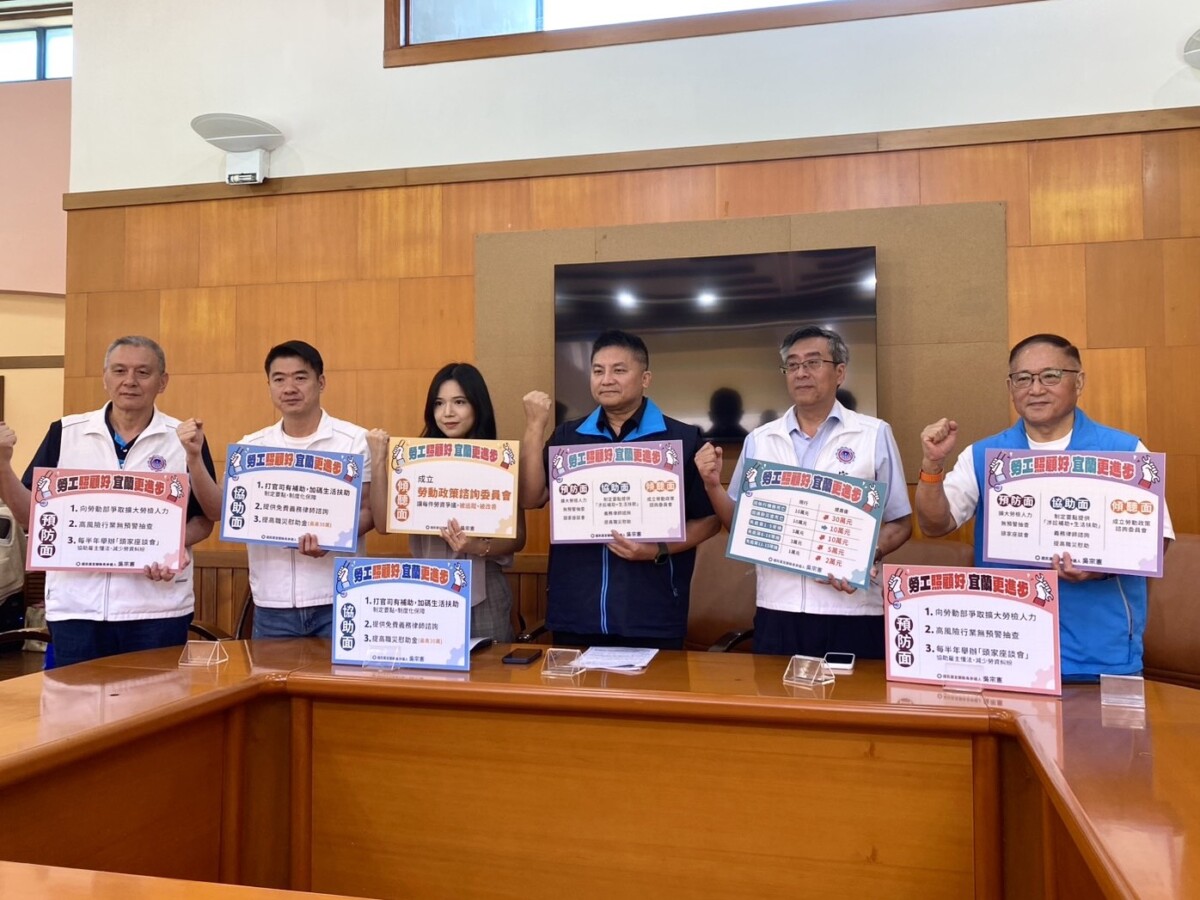 國民黨宜蘭縣長參選人吳宗憲29日召開記者會,與縣議員林義剛、楊弘旻、林岳賢、陳鴻禧、沈志弘、黃琤婷,及競辦發言人鄭皓文,共同提出勞工政策,從「預防、協助、傾聽」三面向著手,制度化提升勞動保障。