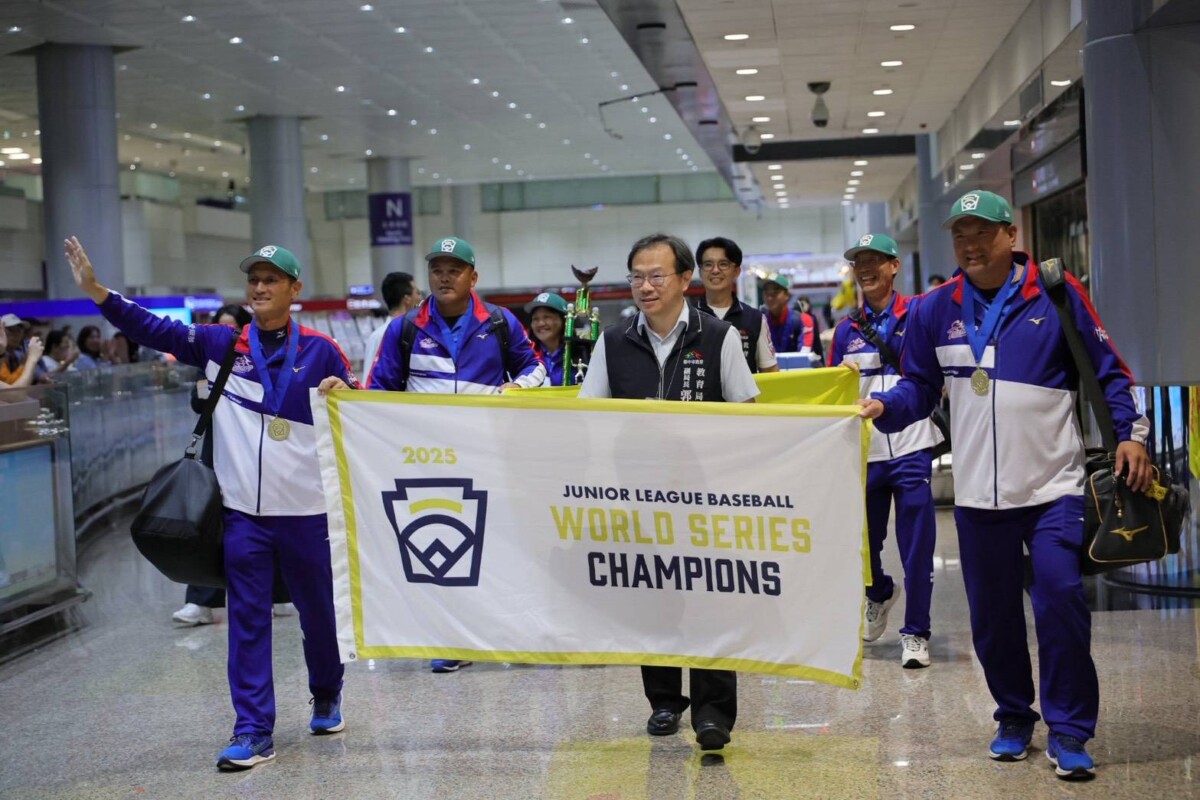 台中市青少棒小將勇奪雙料世界冠軍!中山國中棒球隊代表出征「2025 世界少棒聯盟(LLB)世界次青少棒錦標賽」;而由中山、向上、西苑及豐陽國中組成的中市青少棒代表隊接續代表參加「2025 PONY小馬級世界青少棒錦標賽」,兩項賽事雙雙於美國賽場發揮頂尖實力,摘下世界冠軍金盃,創下台中市同年囊括LLB次青少棒與PONY青少棒世界賽冠軍的歷史紀錄。市府教育局副局長郭明洲今(17)日代表市長盧秀燕率領中山國中、向上國中及豐陽國中校長、教師及家長們前往桃園機場接機,為國爭光的城市小將及教練團喝采。