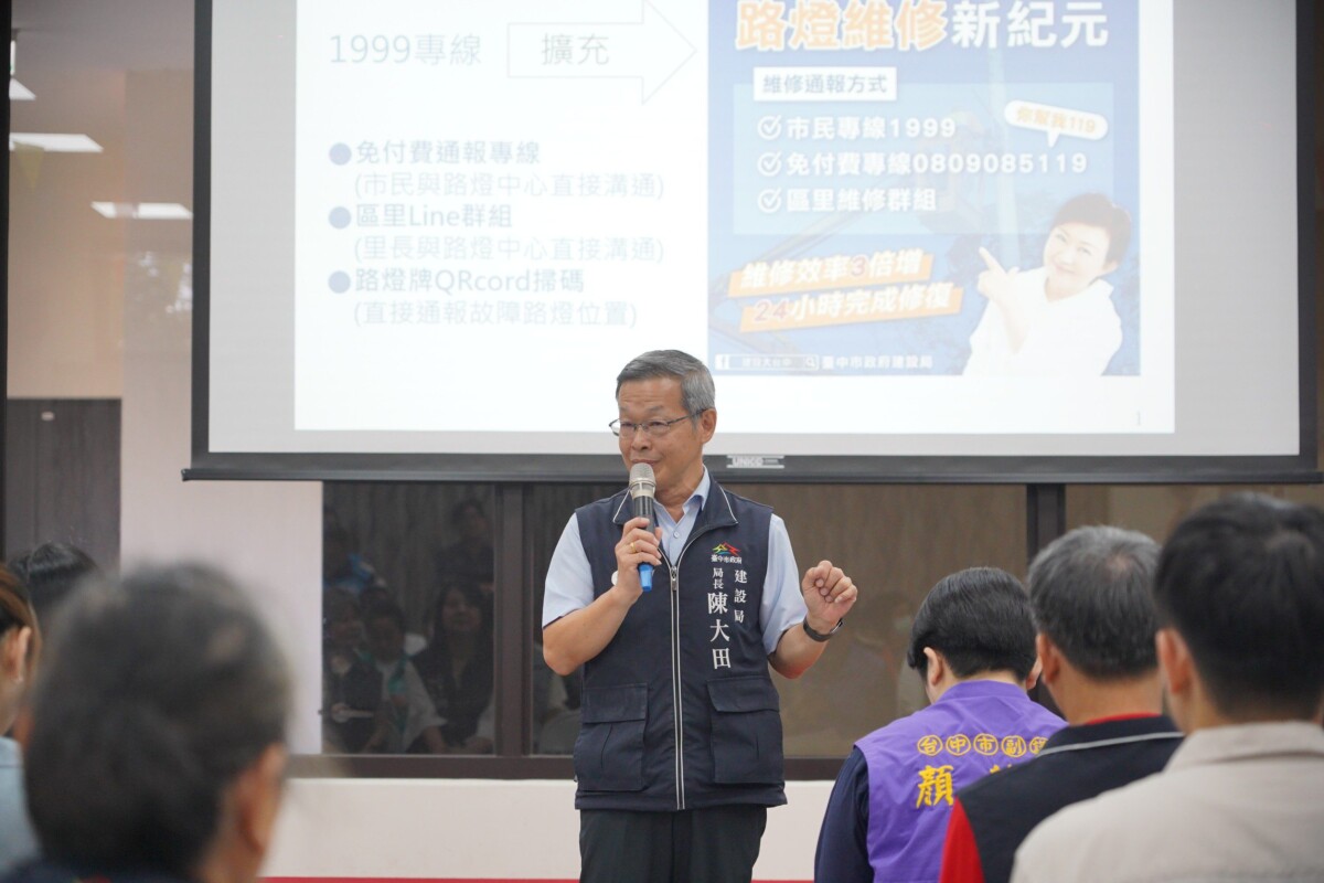 為提升夜間照明品質與用路人安全,並落實低碳永續目標,台中市長盧秀燕積極推動「增亮減碳」計畫。市府建設局自今年5月起全面啟動路燈汰換作業,今(21)日在沙鹿區舉行進度說明會,由建設局長陳大田親自主持,說明目前已完成約3萬盞路燈換裝,其中海線地區約9,800盞。會中,陳局長展示新舊燈具差異,並與地方民代及里長共同討論計畫進度,藉由說明會加強與民眾溝通,推動智慧節能照明升級,展現市府改善城市夜間照明與能源永續的決心。