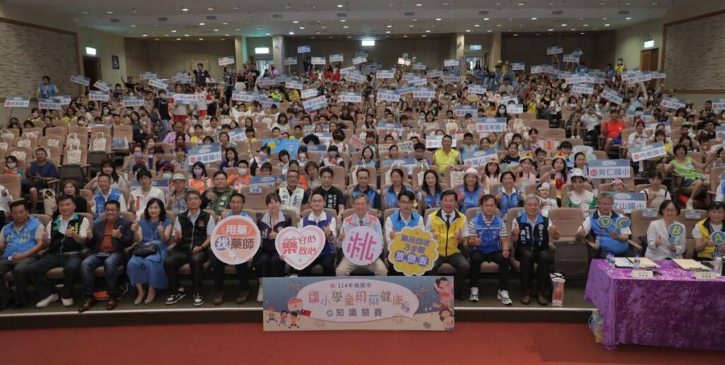 「百校爭鳴,誰能奪冠?」在藥師走入校園、點燃健康知識火苗後,來自各校的學童菁英齊聚一堂,為爭奪最高榮耀展開激烈對決!桃園市政府衛生局今(1)日於桃園市立圖書館平鎮分館盛大舉辦「114年桃園市國小學童用藥健康知識競賽」,這場比賽不僅是知識的交鋒,更是一場守護健康的青春戰役。經過校園宣講洗禮,每校精選三位代表組隊應戰,帶著全校期待與信心登場,現場宛如小小健將的「智慧奧運」,氣氛熱烈、扣人心弦,知識競賽不只是知識較量,更是孕育學童成為健康小尖兵的重要平台。