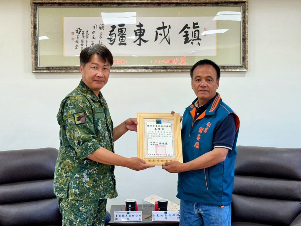 為感謝國軍官兵辛勤付出,臺東縣卑南鄉公所特於今(2)日秋節前夕,由秘書謝英雄代表郭宗益鄉長率民政課長陳吉隆,在軍人服務站站長曾仁政陪同下,前往陸軍臺東地區指揮部及空軍第七戰術戰鬥機聯隊等單位,向堅守崗位、保家衛國家的官兵弟兄提前祝賀佳節,並致贈慰問金。