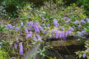 漫步紫瀑花廊下 大安森林公園錫葉藤盛開