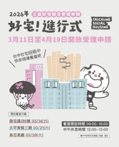 「好宅」聯合招租! 南屯建功5號、太平育賢三期、烏日高鐵好宅 即日起至4/10開放申請