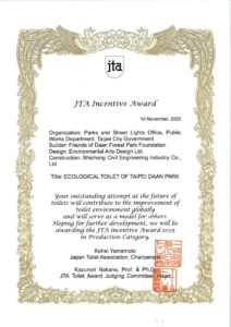 北市再添國際榮耀 大安森林公園公廁勇奪日本JTA廁所獎