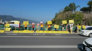 不要廢棄物掩埋場!埔里鄉親愛蘭橋 舉牌、拉白布條表決心