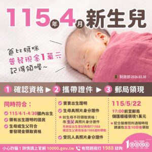 普發現金1萬元 4 月新生兒這樣領!