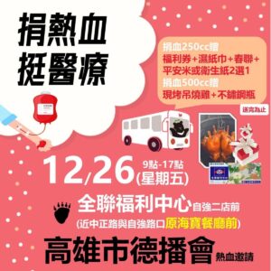 捐血有愛.德播傳情 12月26日高雄登場 邀請民眾熱血相挺