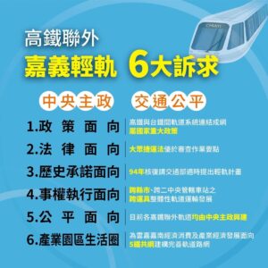 高鐵聯外軌道運輸「獨漏」嘉義 市府:交通公平性何在?