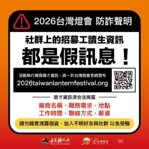 嘉義縣政府澄清「2026台灣燈會」 僅透過官方網站公告徵才