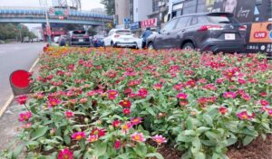 開車行路好心情 百日草點亮台北分隔島