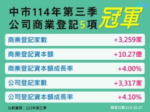 台中經濟動能強勁! 第三季五項指標稱冠六都 續寫成長佳績