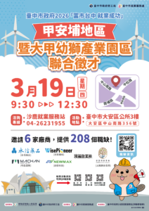多元產業齊徵才! 甲安埔地區聯合徵才3/19大安區公所登場