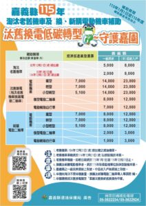 嘉縣汰舊換電低碳轉型 115年延續補助最高省2萬1,000元