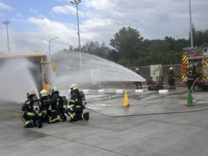 電動公車火警模擬上場!北市跨局處操演充電樁與行駛起火應變