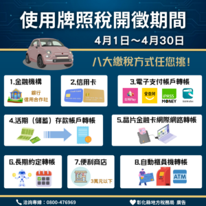 4月牌照稅開徵 多元繳稅管道 輕鬆搞定沒煩惱