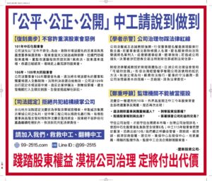 中工違法剔除股東提名 開公司治理倒車 股東疾呼嚴懲不法