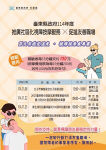 視障按摩展專業 臺東縣府百元體驗活動 11/29南京路市民廣場見