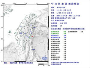 影音/0326中午規模4.7地震 最大震度在臺東4級