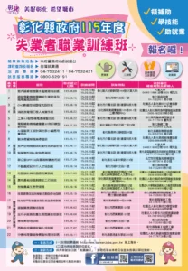 領補助、學技能、助就業! 彰化縣115年失業者職業訓練班招生中
