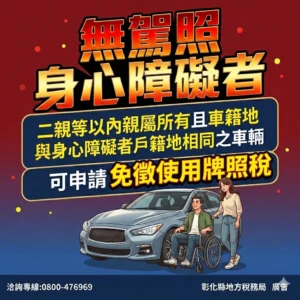 牌照稅減免鬆綁 身障者與二親等親屬不限同戶籍