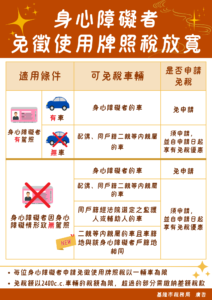 牌照稅免稅放寬!身障者無駕照 二親等內親屬車輛也可免稅